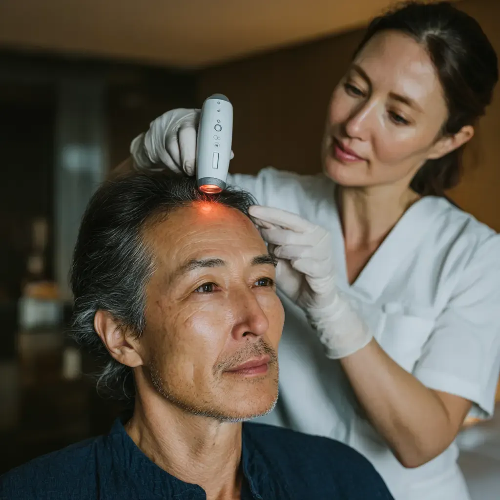 첫째, 'LED 두피 관리기'는 특정 파장의 빛(주로 붉은색 근적외선)을 두피에 쬐어주는 방식이다. 이를 저출력 레이저 요법(LLLT, Low-Level Laser Therapy)이라고도 부른다. 빛 에너지가 두피 깊숙이 침투하여 모낭 세포의 미토콘드리아를 활성화시킨다. 미토콘드리아는 세포의 '에너지 공장' 역할을 하므로, 이 기능이 활발해지면 세포 분열이 촉진되고 모발의 성장 주기가 연장되며, 염증을 완화하는 효과를 가져온다. 즉, LED는 영양분을 '밀어 넣어주는' 것이 아니라, 세포 스스로가 '힘을 내서 일하게끔' 만드는 일종의 에너지 부스터 역할을 한다.