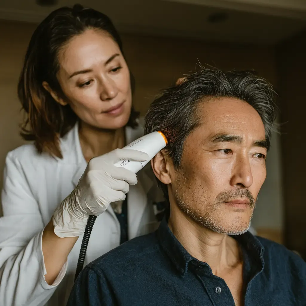 홈케어용 두피 갈바닉 기기는 분명 꾸준히 사용했을 때 긍정적인 효과를 가져다주는 훌륭한 도구이다. 하지만 이는 마치 우리가 집에서 흔히 사용하는 일반의약품과 같다. 가벼운 증상에는 도움이 되지만, 병의 근본적인 원인을 찾아 해결하는 데는 명백한 한계가 있다. 헤드스파K의 전문적인 관리는 의사의 정확한 진단과 처방에 비유할 수 있다. 우리가 병원에 가면 의사가 청진기, 혈압계, 내시경 등 다양한 도구를 사용해 몸 상태를 정확히 파악하고 그에 맞는 약을 처방하는 것처럼, 헤드스파K에서는 고배율의 디지털 현미경과 유수분 측정기, 두피 혈류 측정기 등 전문 진단 장비를 통해 눈으로는 볼 수 없는 두피 속 세상을 면밀히 분석한다. 현재 나의 탈모가 유전적 요인 때문인지, 스트레스로 인한 혈액순환 장애 때문인지, 혹은 잘못된 생활 습관으로 인한 모낭의 염증 때문인지를 과학적인 데이터를 기반으로 정확하게 진단하는 것이다.