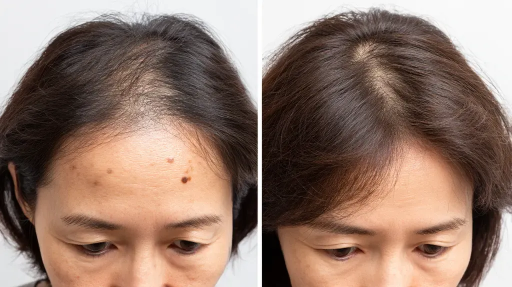 셋째, 정수리나 가르마 라인이 예전보다 휑해 보이고 두피가 비쳐 보이는 느낌이 든다.